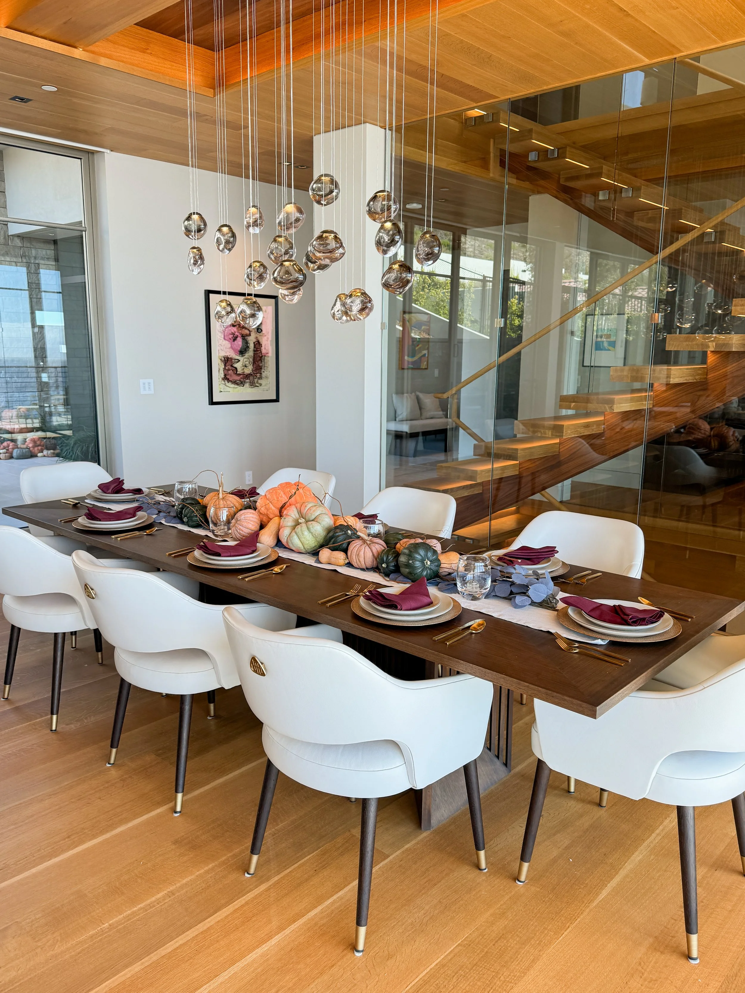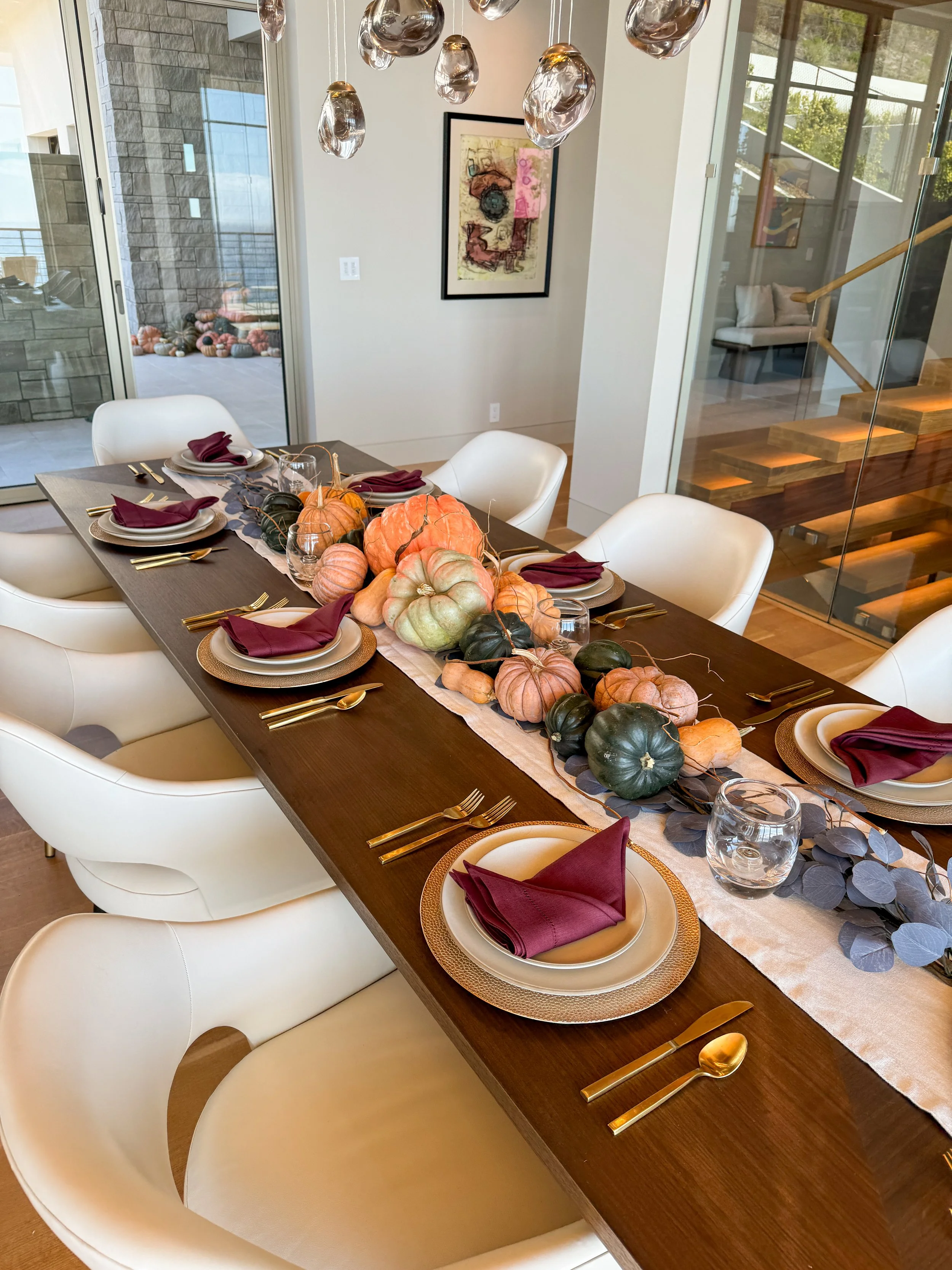 In the fall of 2024, I had the pleasure of decorating for Halloween/Thanksgiving. The primary areas of focus were the exterior front entry, screened porch, and dining room. My goal was to create moody, modern, and organic displays, allowing the colors and textures to speak for themselves.