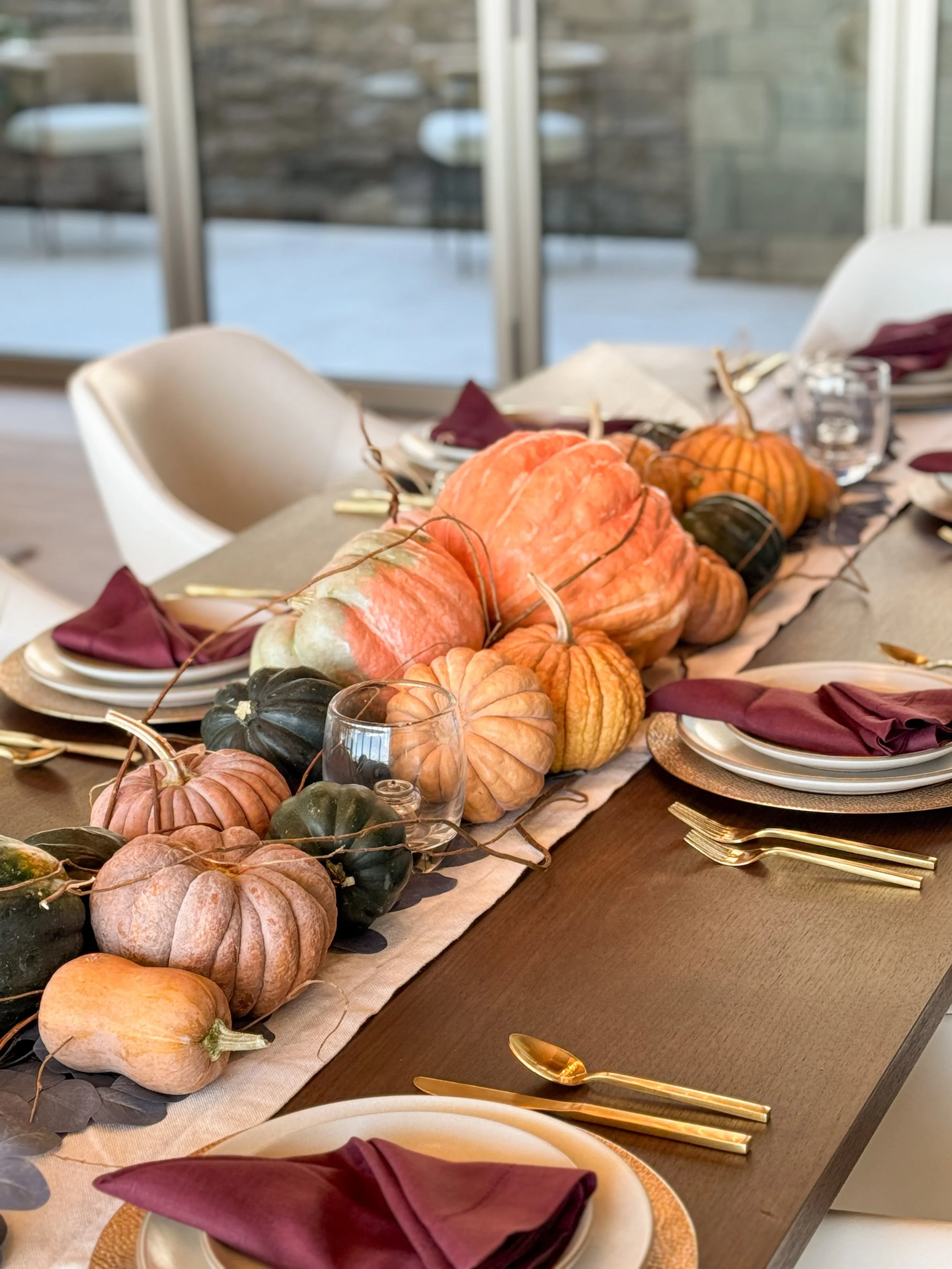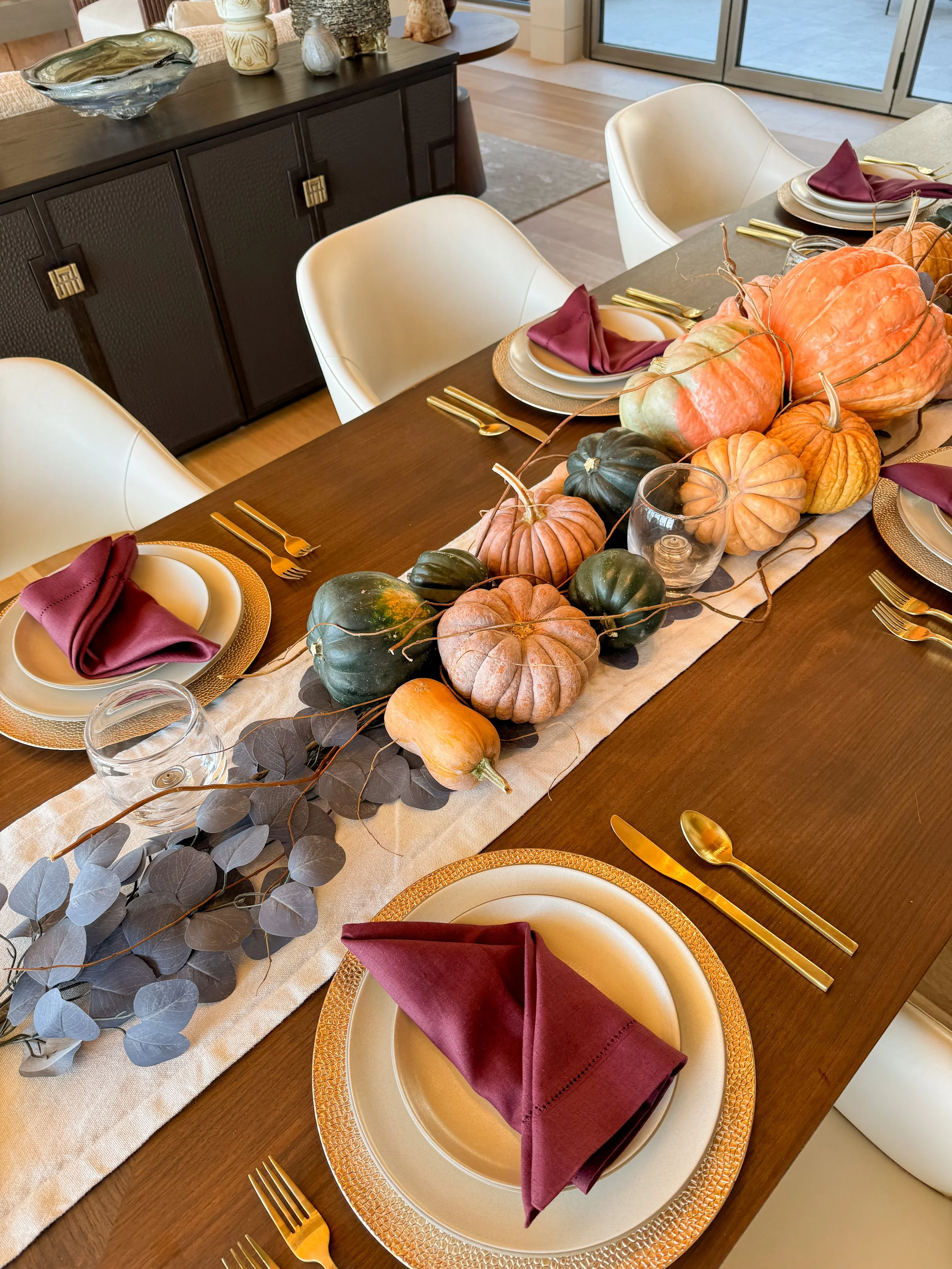 ~ Pumpkins, napkins, garlands, runner, pillows, etc.